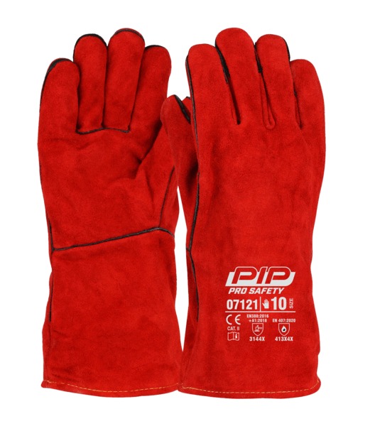 Gant de soudeur en croûte de cuir offrant confort et excellente résistance aux contraintes mécaniques et thermiques.