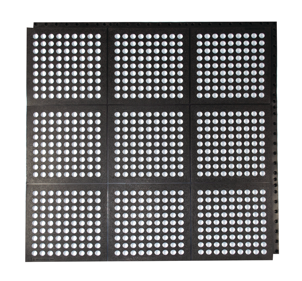 Avec une épaisseur de 16 mm, ces dalles concilient confort anti-fatigue (compression contrôlée), résistance à l’abrasion et coefficient de frottement élevé pour limiter les risques de glissade, même en conditions humides.